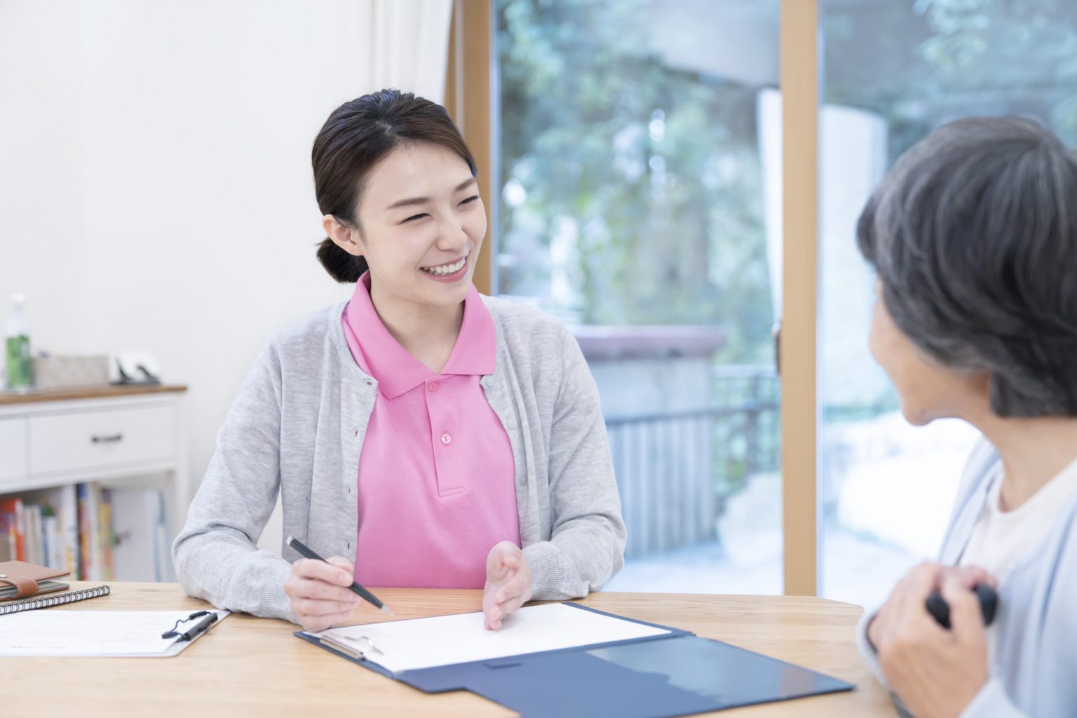 お客様の希望などの聞き取り、サービス内容の検討、医療・福祉体制の確認などを行っています。また、必要に応じて、さまざまな関係機関との連絡・調整も行います。